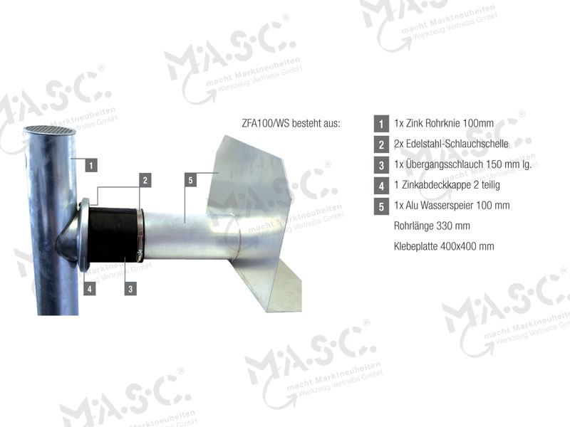 Zn Fassadenabzweig 100 mm mit Wasserspeier